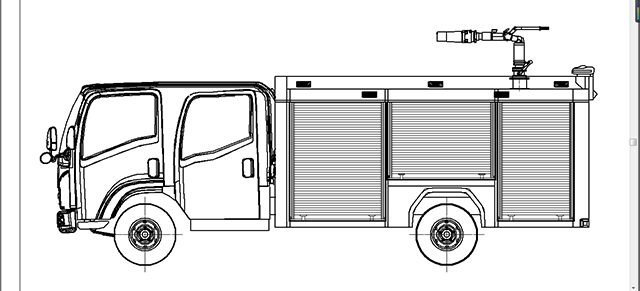 總體布置 | 整車由消防員乘員室和車身兩大部分組成,車身布置采用內藏罐式結構,左右兩側為器材箱,中部為水罐,器材箱后部為泵房。 |